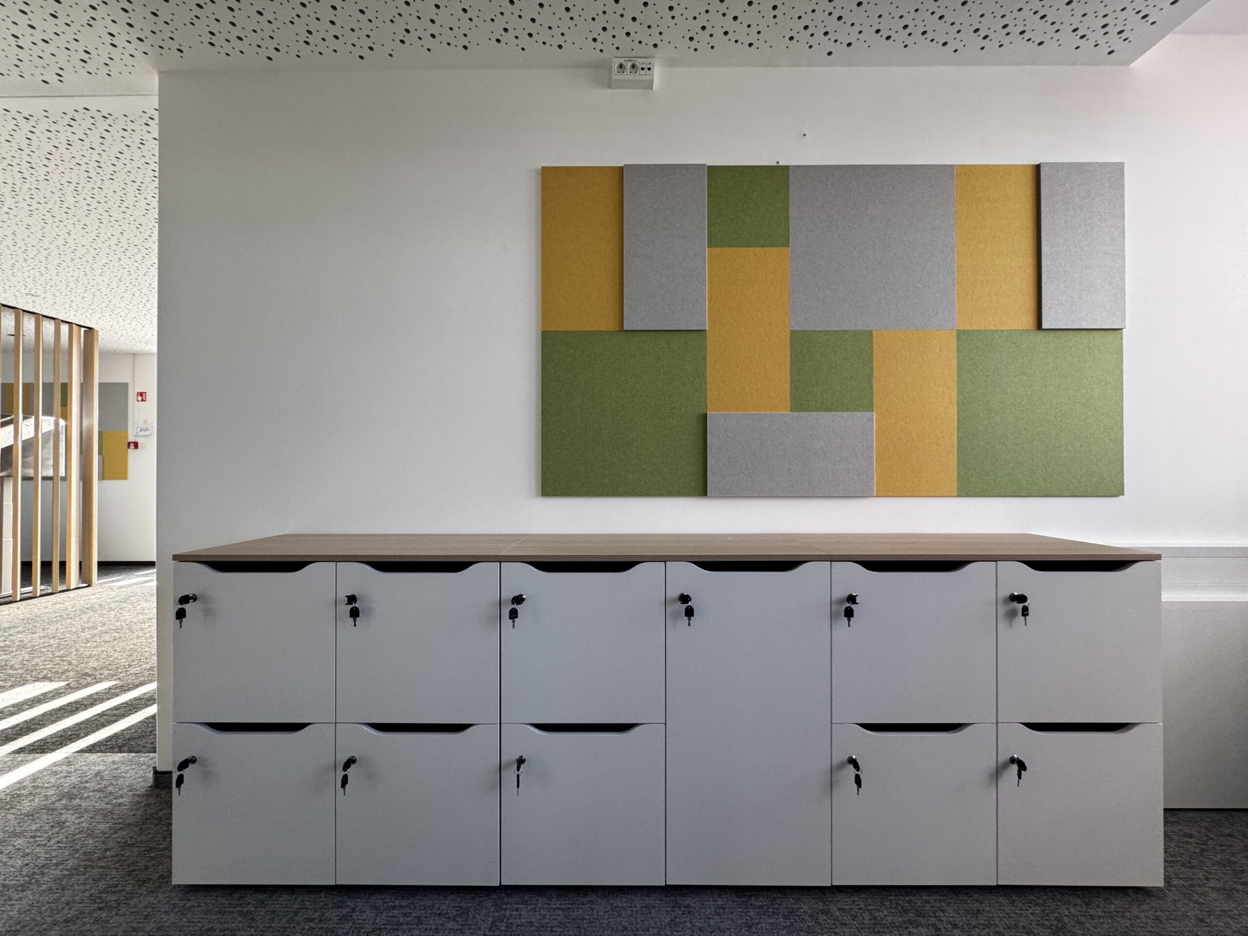 One of Slovenia’s largest office fit-out projects – 8 floors, 1,300 workstations for NLB d.d. Installation of floors 2 and 3 currently in progress. Workstations, acoustic panels, timber slat partitions and glass walls – all from one source.